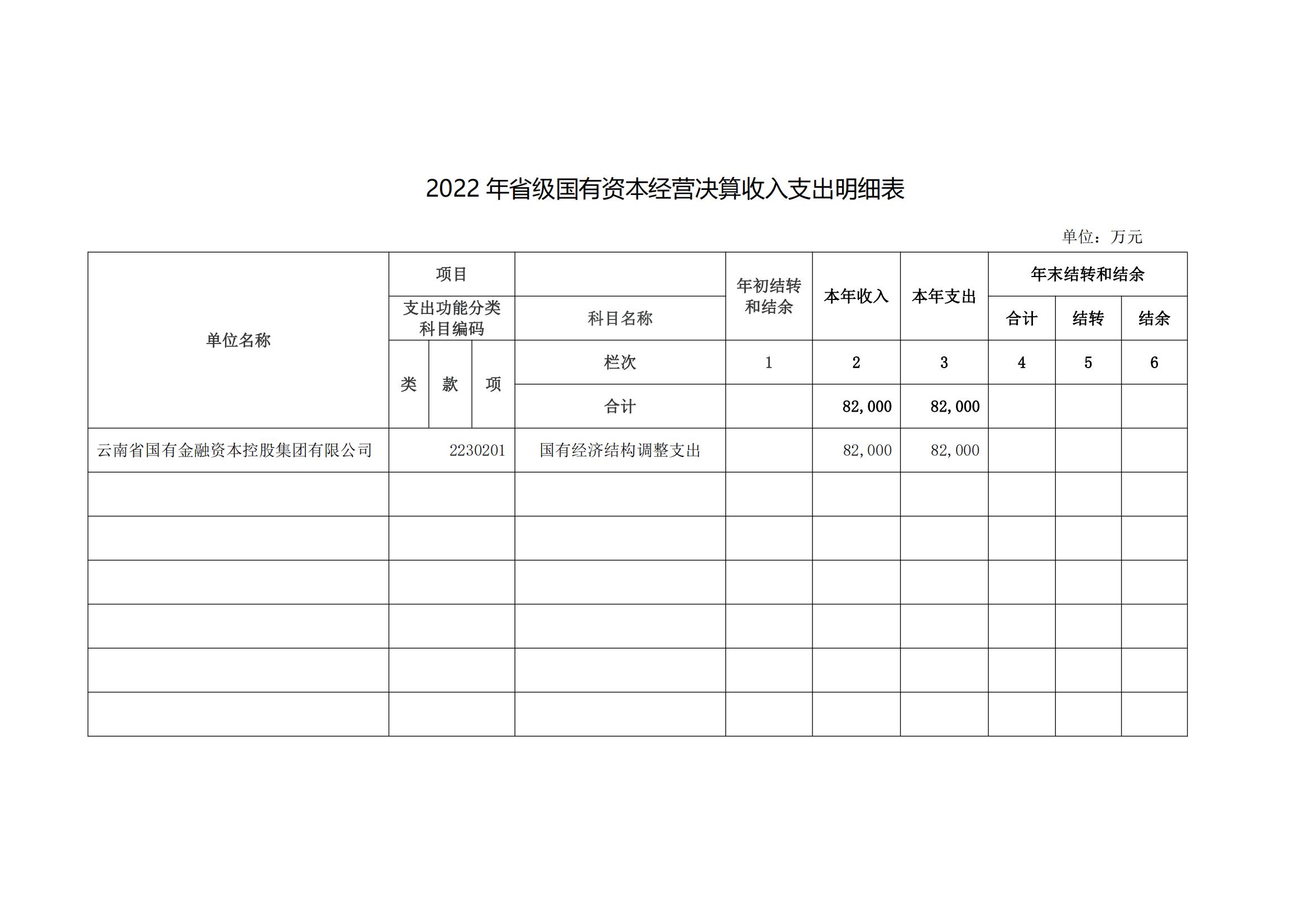 根据《云南省财政厅关于2022年度国有资本经营决算的批复》(云财资〔2023〕71号)要求,现将我公司2022年国有资本经营决算情况公示如下: