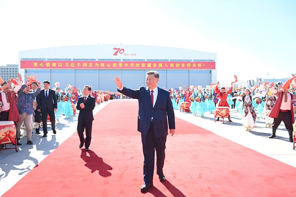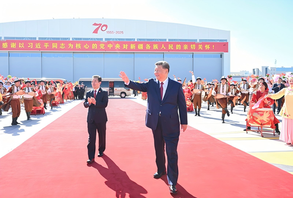中共中央总书记、国家主席、中央军委主席习近平在乌鲁木齐出席新疆维吾尔自治区成立70周年庆祝活动后,25日乘专机返回北京。受习近平总书记嘱托,以王沪宁为团长的中央代表团将于25日至28日在新疆各地看望慰问各族各界干部群众。